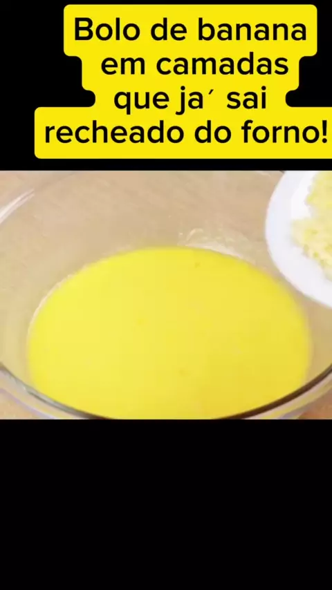 Bolo de banana em camadas que já sai recheado do forno! #banana #receitascaseiras #receitasfaceis #TopickerNoKwai #comendo
