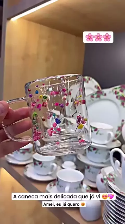 Copo De Vidro De Parede Dupla LUOLULULU , Flores Secas Florais Simples , Caneca De Leite Expresso Com Alto Teor De Boros. #caneca #copo #vidro