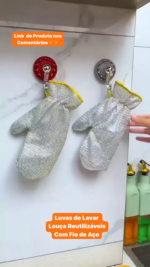 Luvas de Lavar Louça Reutilizáveis Com Fio de Aço. #luvas #lavar #loucafui