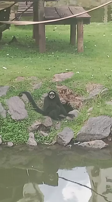 lambendo os dedos #macacocarabranca #AFazenda17 #lago #zoologico
