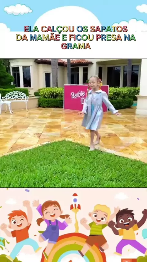 ELA CALÇOU OS SAPATOS DA MAMÃE E FICOU PRESA NA GRAMA #viraliza #crianças #brincadeiras #diversao #infantil