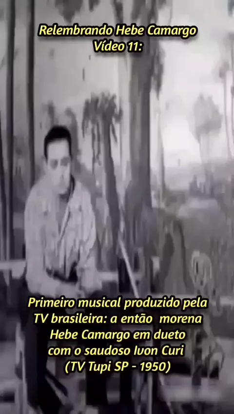 #HebeCamargo #ivoncuri #musicaisantigos #tvtupi #MomentosInesqueciveisDaTV A primeira TV da América Latina, a TV Tupi de São Paulo, foi inaugurada em 1950 e logo em sua estréia um musical com a então morena Hebe Camargo e Ivon Curi. Uma relíquia que compartilho aqui no canal!