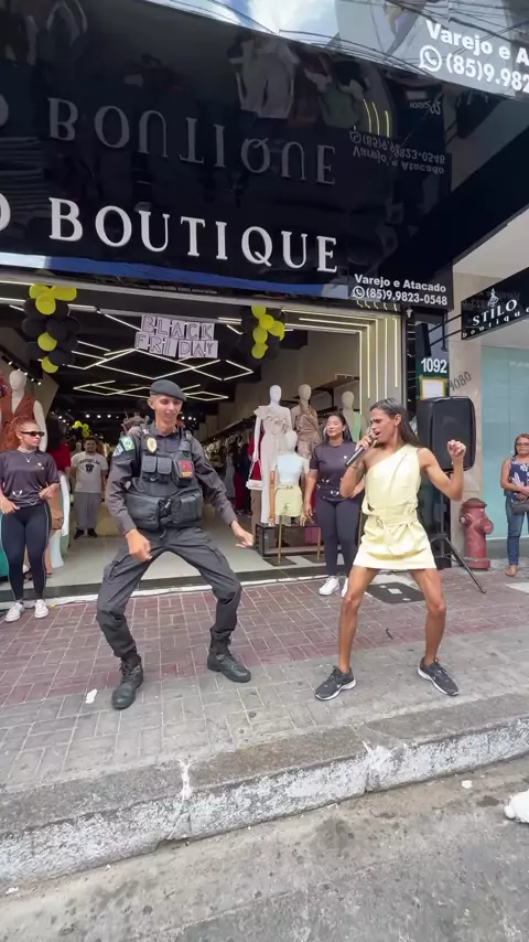 botei até o polícia pra dançar 🤣. #viralvideos #trabalho #frentedeloja #viralreelschallenge #dance
