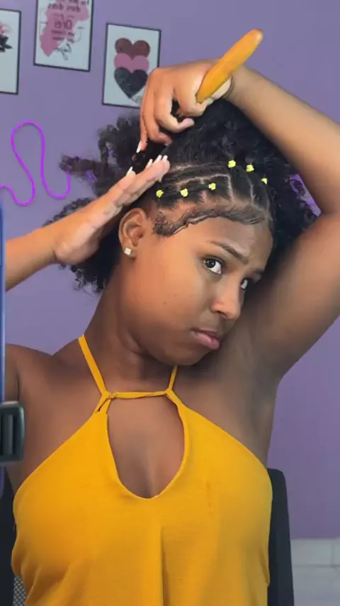 Penteado fácil com trança nagô pra cabelo curto e cacheado!🤩👩🏾‍🦱💖✨ me Segue: @cachosdamille_ #penteado #cacheada #fy #foryou #viraliza