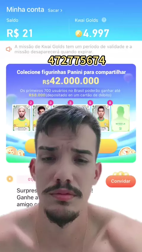 Usem o meu código e liberem o de vocês! COD: Kwai472775674 #FigurinhasPremiadas #codigo #dinheiro #futeboldemesa #timeorgulho