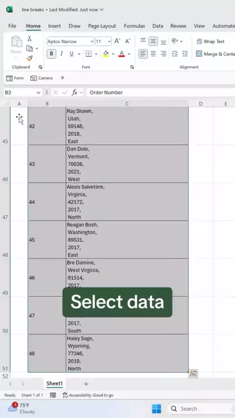 Como remover rapidamente quebras de linha no Excel Compre cursos, merch de atalho, guias do Excel e muito mais usando o link no meu pr0file. # excel # exceltips # exceltricks # planilhas # corporativa # contabilidade # finanças # workhacks # tutorial # folhas