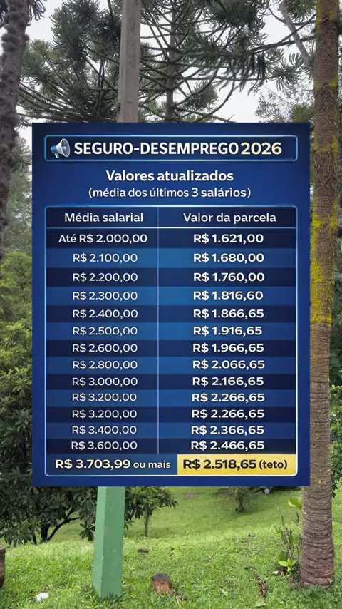 🚨 SEGURO-DESEMPREGO 2026 ATUALIZADO! 🚨 Você sabe quanto vai receber se for demitido? 💸 O valor é calculado pela média dos seus últimos 3 salários e pode chegar ao teto de R$ 2.518,65 por parcela. Muita gente é demitida e: ❌ não dá entrada no prazo ❌ perde parcelas por erro ❌ nem sabe que tem direito ⚠️ Atenção: só tem direito quem foi demitido sem justa causa (ou na rescisão indireta). #trabalho #salario #direito
