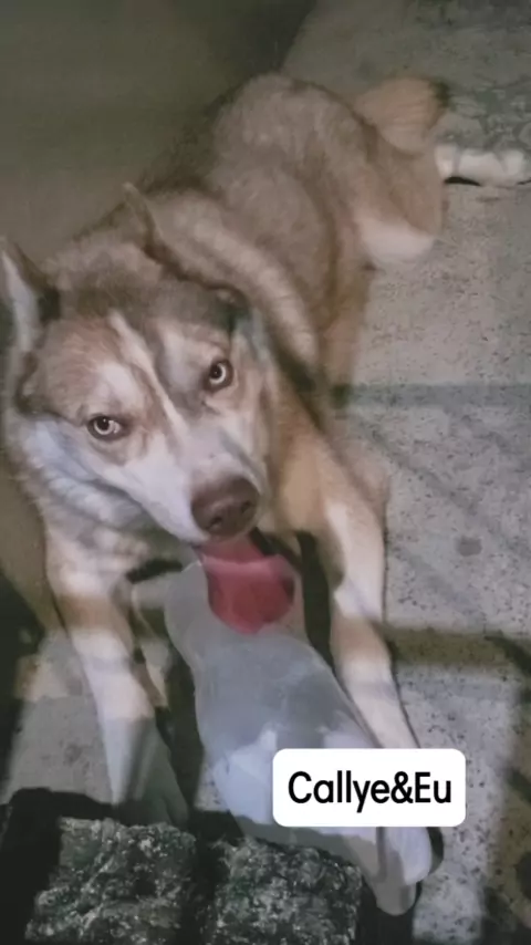 E esse foi o jeito que achei para aliviar o calor... Além de frutas congeladas... Mais dicas? #HuskySiberiano #Husky #doguinho #doguinha