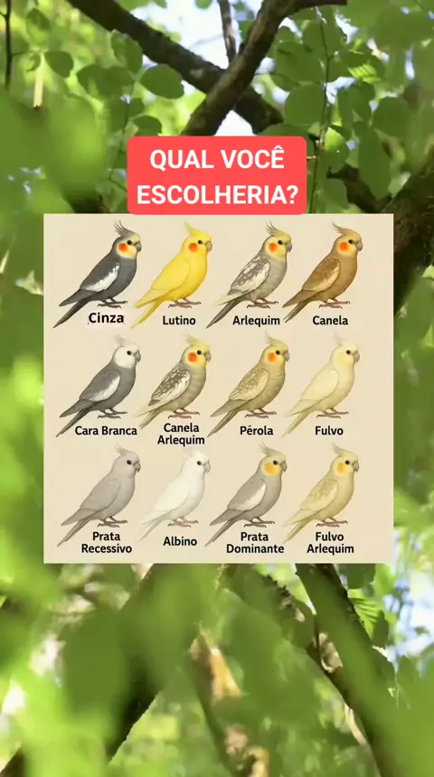 PRINCIPAIS MUTAÇÕES DE CALOPSITA. #calopsita #_calopsita #calopsitamansa #calopsitabrasil #cockatiel