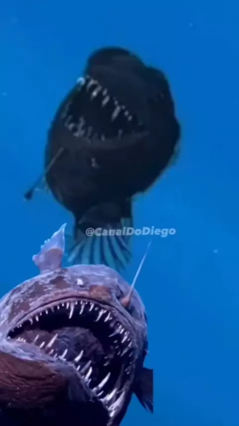 Peixe diabo foi visto a luz do dia próximo a superfície. #peixediabonegro #canaldodiego