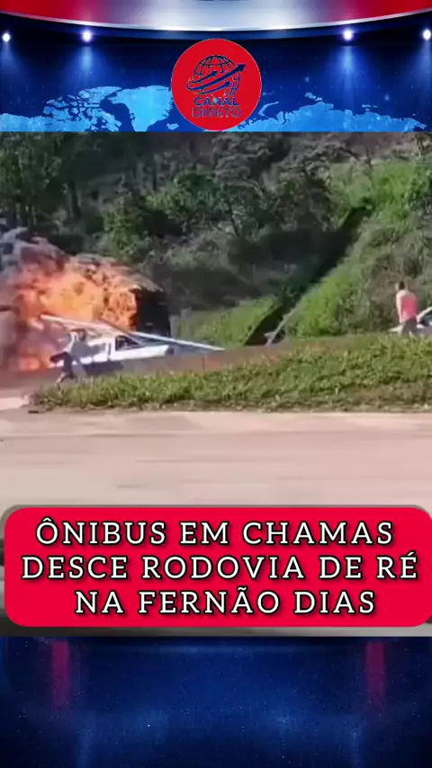 ÔNIBUS EM CHAMAS DESCE RODOVIA DE RÉ NA FERNÃO DIAS 🚨 Descrição: Um grave incidente assustou motoristas na rodovia Fernão Dias, em Minas Gerais. Um ônibus de turismo pegou fogo e, desgovernado, desceu a pista de ré em alta velocidade até atingir o acostamento. Detalhes do ocorrido: Segurança: De acordo com o Corpo de Bombeiros, os 47 passageiros e o motorista conseguiram desembarcar antes que as chamas se alastrassem. Não houve feridos.