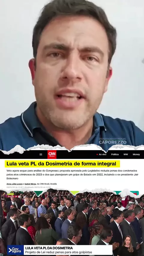 URGENTE! LULA VETOU A DOSIMETRIA DE FORMA INTEGRAL! Não foi coincidência! Lula escolheu propositalmente este dia 8 de janeiro, dentro de um evento montado para atacar novamente a direita e tentar, de uma vez por todas, consolidar a narrativa construida por eles sobre "tentativa de golpe contra o Estado". Comente Compartilhe #brasil