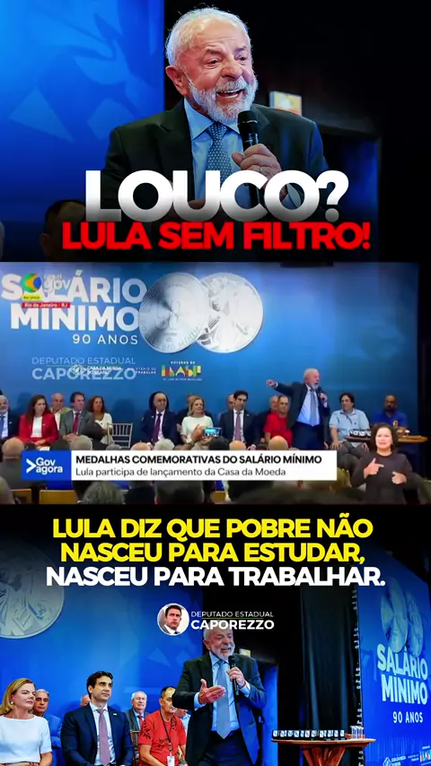 “POBRE NÃO PRECISA ESTUDAR. POBRE NÃO NASCEU PARA ESTUDAR; POBRE NASCEU PARA TRABALHAR” - Luiz Inácio Lula da Silva, 16 de janeiro de 2026. Brasília, Distrito Federal, Brasil. O que você sente lendo e ouvindo isso? Comente Compartilhe