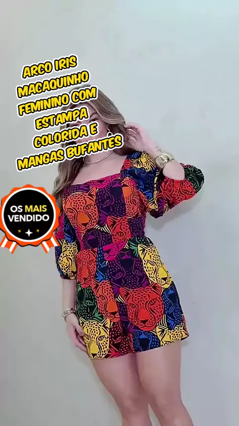 Apenas R$64,99! Confira este ARCO IRIS Macaquinho Feminino com Estampa Colorida e Mangas Bufantes Tamanho P M G 36-42 Estilo Casual e obtenha-o no Kwai agora! https://s.kw.ai/w/AoC12mpv