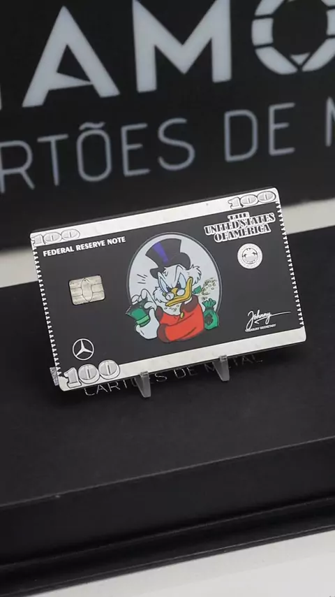 💵🦆 Tio Patinhas versão 50 dólares em metal! Um cartão de metal que mistura riqueza, humor e luxo em um design extremamente detalhado e chamativo 💎✨ Gravação de alta precisão, acabamento premium e presença de quem nasceu pra prosperar 💳🔥 📲 Quer o seu? Acesse nosso site ou chame no WhatsApp e personalize do seu jeito! #tiopatinhas #cartãodemetal #luxo #moneyvibes #diamond