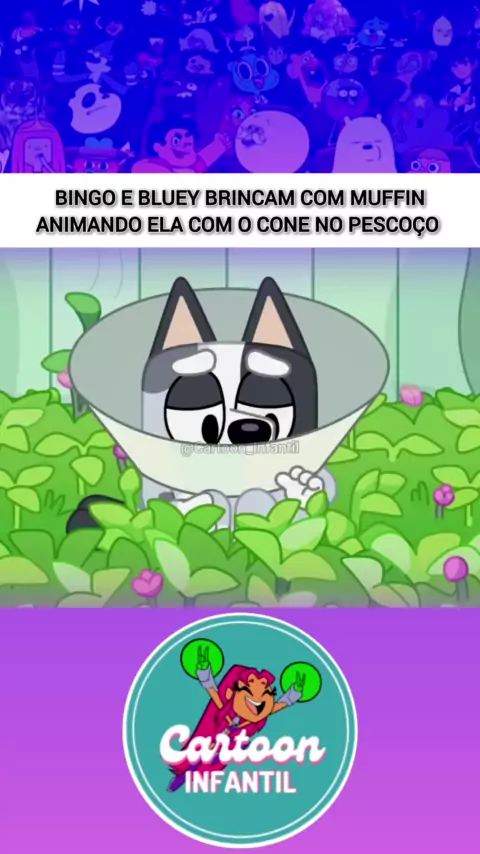 Bingo e Bluey brincam com Muffin animando ela com o cone no pescoço #cartoons #Infantil #kids #desenhosanimados #Bluey