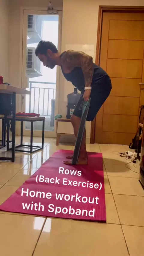 Upper Body Home Workout: Lakukan 25 repetisi x 4 sets untuk setiap gerakan 🏋️‍♂️ 🏠 Spoband enak banget ada lubang handle buat tangan DAN kaki jadi lebih stabil!#OlahragaDiRumah#HomeWorkout#ResistanceBands