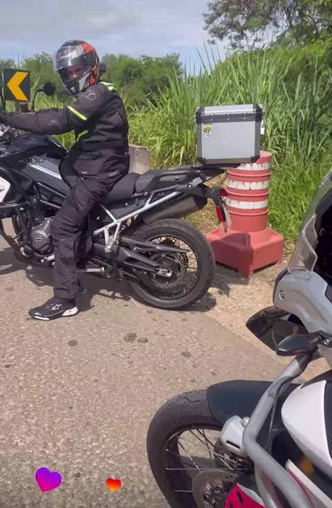 Casal motociclista q compartilha uma paixão! Andar de moto é mais do que muitos entendem, é terapêutico, acalma a mente, cansa o corpo e descansa a alma, é a alegria de sentir o vento fresco sob a sombra das árvores num dia quente, é se fundir com a moto!