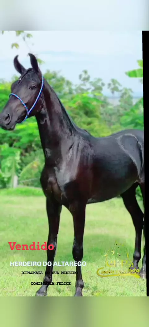 Potra preta DINAMARCA MACEDO marcha Picada genรฉtica ao extremo Pai: TIMONEIRO DA RIOCON Mรฃe: GALILร‰IA DA VILA LIBERDADE carrega na sua Genรฉtica duas vezes Haity Caxambuense e Lampeรฃo Ho