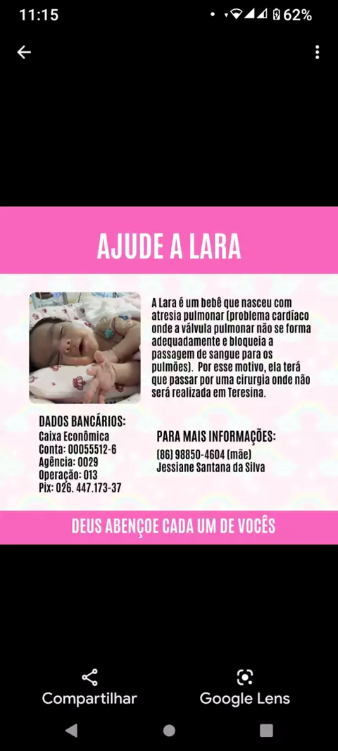 ajude a salvar a pequena Lara. ela tem menos de dois meses e nasceu com Atresia Pulmonar.