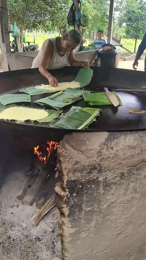 minha sogra fazendo beju na folha da bananeira Apolinário - Pará