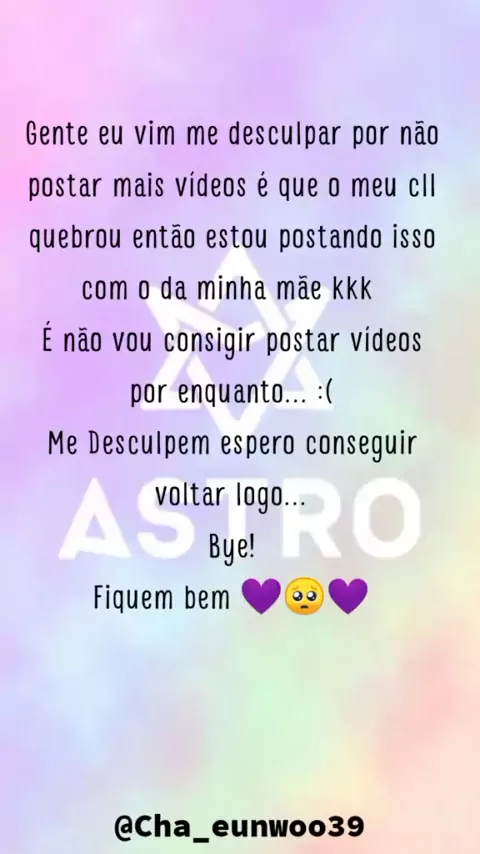 Vou tentar voltar o mais rápido possível! 💜 #astro #kpop #aroha #vousairdokwaiporumtempo #bye...