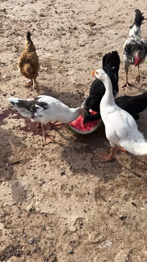Dando frutas aos #ganso e aos #pato . ##roça.