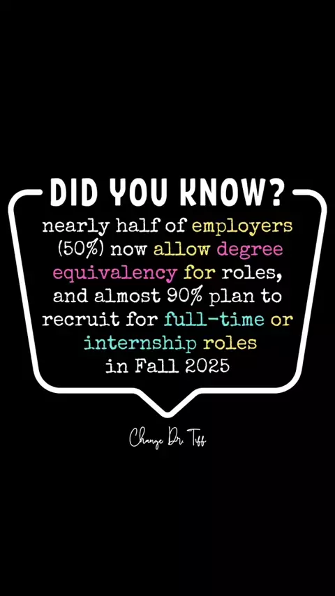 Employers are broadening qualification criteria while firm on hiring early-career talent. Source: NACE Job Outlook 2025 Spring Update https://naceweb.org/job-market/trends-and-predictions/half-of-employers-have-roles-that-offer-a-degree-equivalency