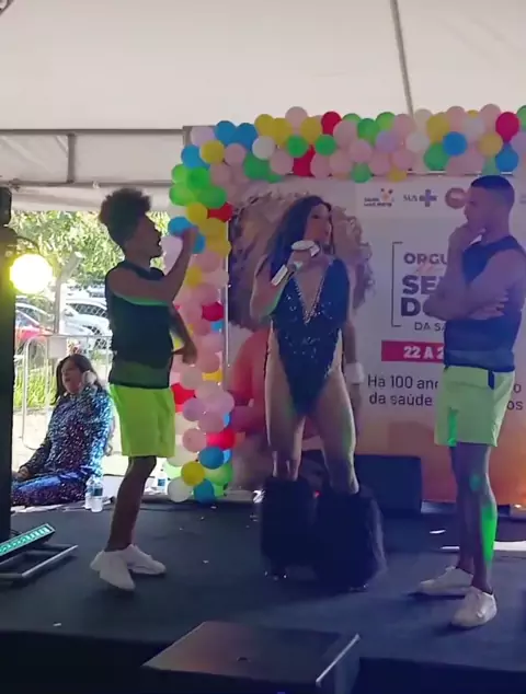 Hoje foi dia de muito axé, brilho e energia boa nesse evento lindo do Outubro Rosa, homenageando todos os profissionais incríveis da saúde. 🌸🌈💃 Um show que foi pura celebração da vida, com muito amor e gratidão no coração. 🌟🎶 #OutubroRosa #FeiraDaSaúde #Axé #Gratidão #Show