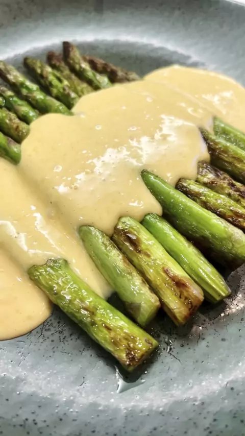 Aspargos com molho holandês diferenciado! 😋 #aspargos #molho #holandes #receitas