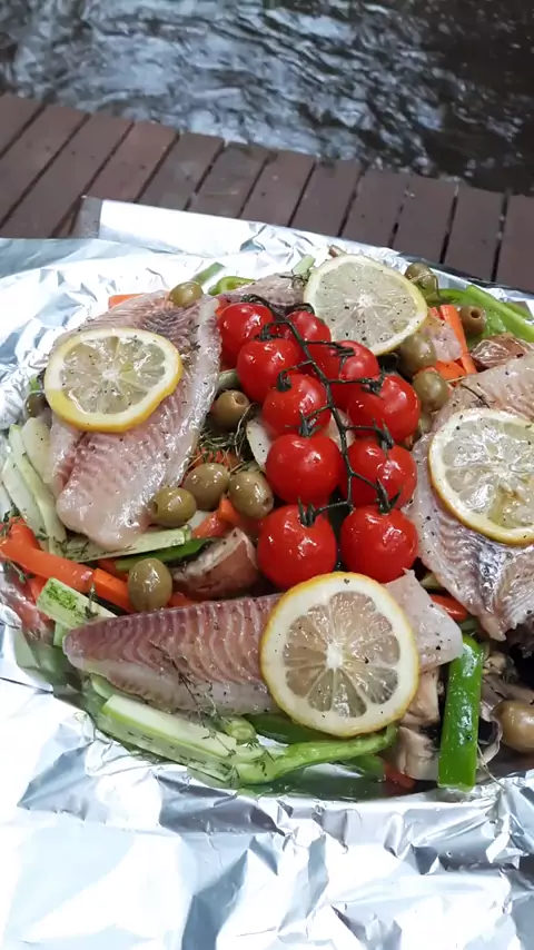 Que tal essa receita de peixe para o feriado santo? Peixe no papelote é muito fácil, nutritivo e gostoso 🐟🥕🍋 Observaçoes: Você pode usar o peixe e os legumes que quiser, se atente ao corte para que os legumes cozinhe junto com o peixe. Ficou cerca de 35 minutos no forno, mas isso vai depender do seu forno e da espessura do peixe Ingredientes: Tilápia/abobrinha/vagem/pimentão/cenoura/cogumelo portobello/tomate de rama/limão siciliano/azeitona/tomilho/sal, pimenta e azeite #gostoso #Receita