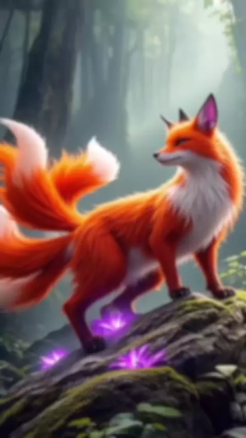 Na floresta colorida, há uma raposa, que tem uma cor de pêlo fantástica e é fascinante.