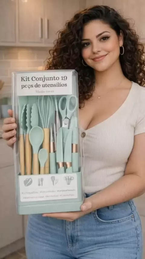 Kit de utensílios com 19 peças em silicone e madeira, prático, resistente e lindo para sua cozinha 🍳✨ #UtensiliosDeCozinha #KitCozinha #Silicone #CasaOrganizada #cozinhalinda