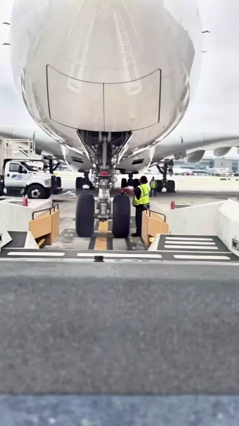 Airbus A380-8 rebocado até o hangar. Você sabe o nome da companhia aérea? # aviation # losangeles # a380 # laxairport # lax # airport # airport # airport # airplanes # usa # fly