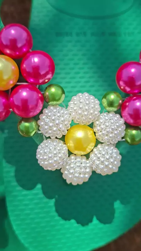 #TramaDePérolasCraqueladas💚✨️ #Chinelosbordados❤️
