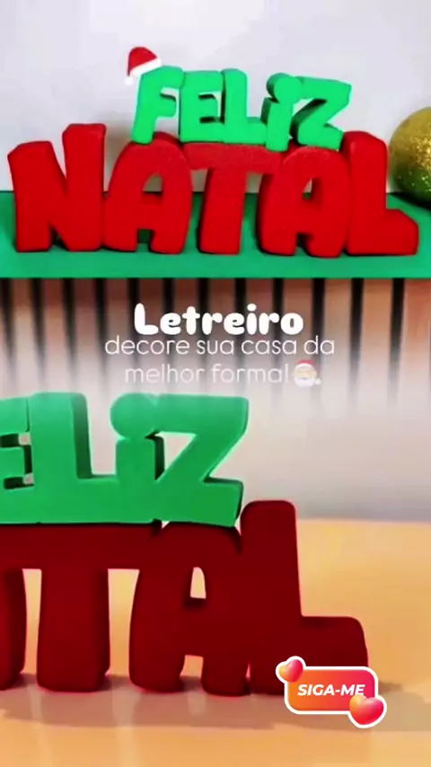 ID: ADU-PNL-NTY Enfeite Natalino Feliz Natal em 3D Letreiro Verde e Vermelho com Gorro #natal #decoracaonatal #3d