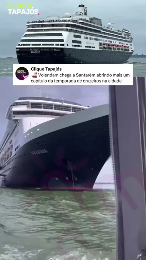 O navio Volendam, da Holland America Line, já está em Santarém, marcando mais um momento movimentado da temporada de cruzeiros no Tapajós. A embarcação trouxe centenas de turistas que seguem rumo às praias de Alter do Chão e aos principais pontos turísticos da região. A chegada reforça o bom ritmo do turismo neste fim de ano e coloca, mais uma vez, Santarém no radar dos viajantes internacionais que exploram a Amazônia. #viral #noticias