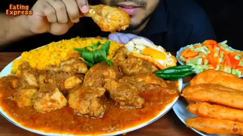 Bhuna khichuri with chicken curry, beguni, fried egg and salad ๐Ÿ› || Cr: Eating Express || #Mukbang #Asmr #asmrsounds #Eat #Food #makan #enak #Yummy #Fyp