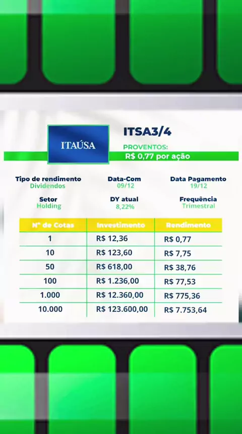 DATA DE DIVIDENDOS DA AÇÃO ITSA3/4 COM DATA COM E DATA DE PAGAMENTO DE DIVIDENDOS POR CADA AÇÃO NA BOLSA DE VALORES #AÇÃO #investir #investimentos #disciplina #dinheiro
