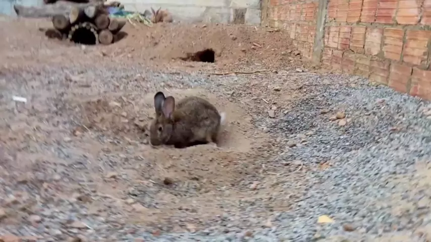 Filhotes de Coelhos Gigantes dentro da toca
