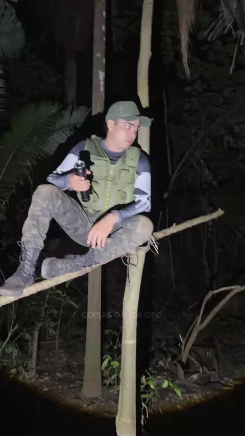 Bicho que senta na árvore à noite na espera