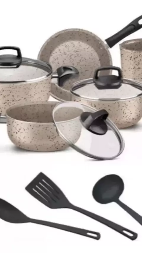 Jogo De Panelas 8 Peças Teflon Antiaderente Frigideira Caçarola Fervedor Talheres Tampa De Vidro #panela #frigideira #comida #fogão #kit