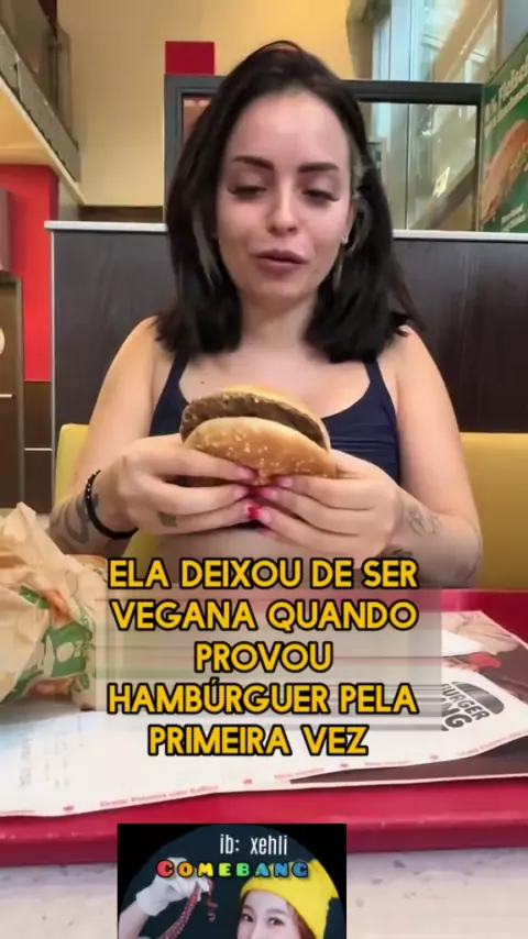 Ela gostou muito de carne, vocês acham que ela era mesmo vegana? #fastfood #Comida #mukbang #food #vegano