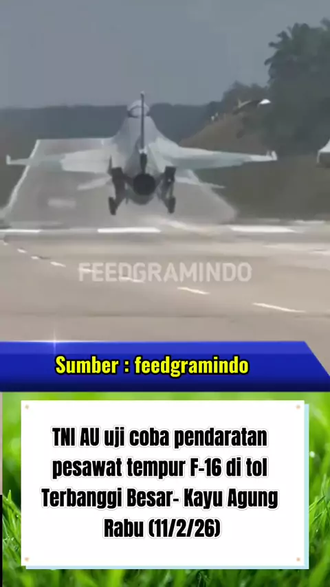TNI AU uji coba pendaratan pesawat tempur F-16 di tol Terbanggi Besar- Kayu Agung Rabu (11/2/26) #TNIAU #pesawat #tempur #tol