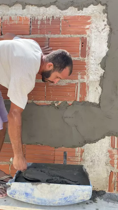 Reboco em parede de alvenaria #reboco #construção #viral