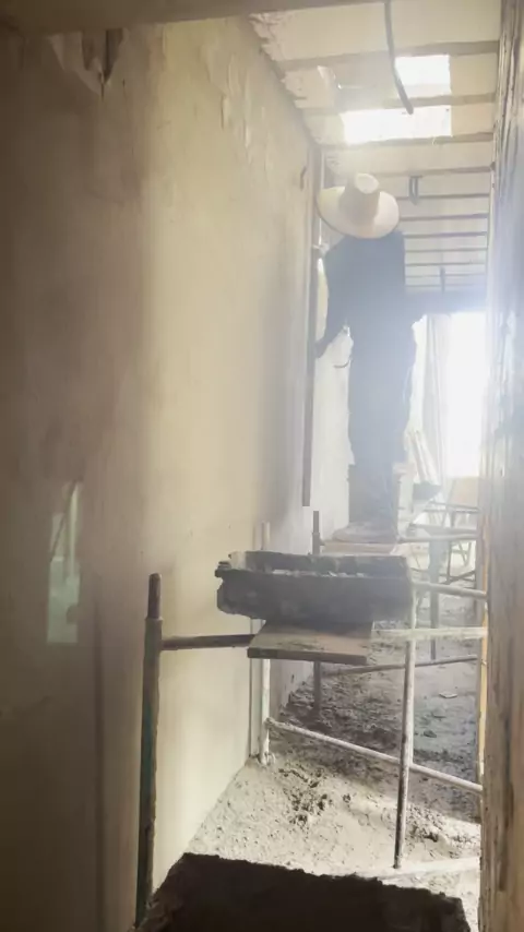 Rebocando a parede daquele jeito.