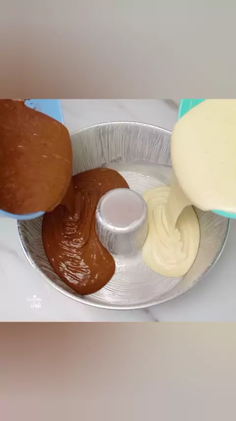 2 Bolos em 1! Despeje a massa assim e veja que incrível! #bolo #receita #vídeo #kwai #viral