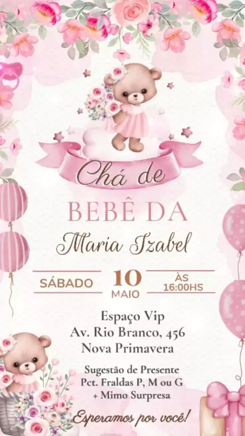 Convite Gif Chá de Bebê Ursinha Rosa 💌 #chadebebe #chadefraldas #Convite #festa #chadebebemenina