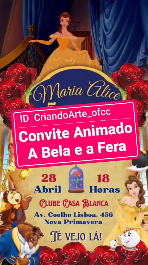 Convite Animado a Bela e a Fera #BelaEaFera #Convite #festa #aniversário #conviteanimado