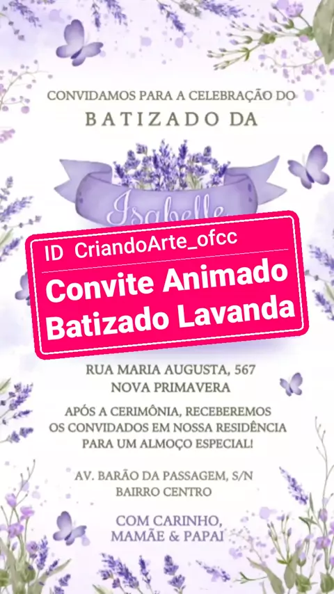 Convite Batizado Lavanda Clean #batizado #Convite #festa #batismo #lavanda